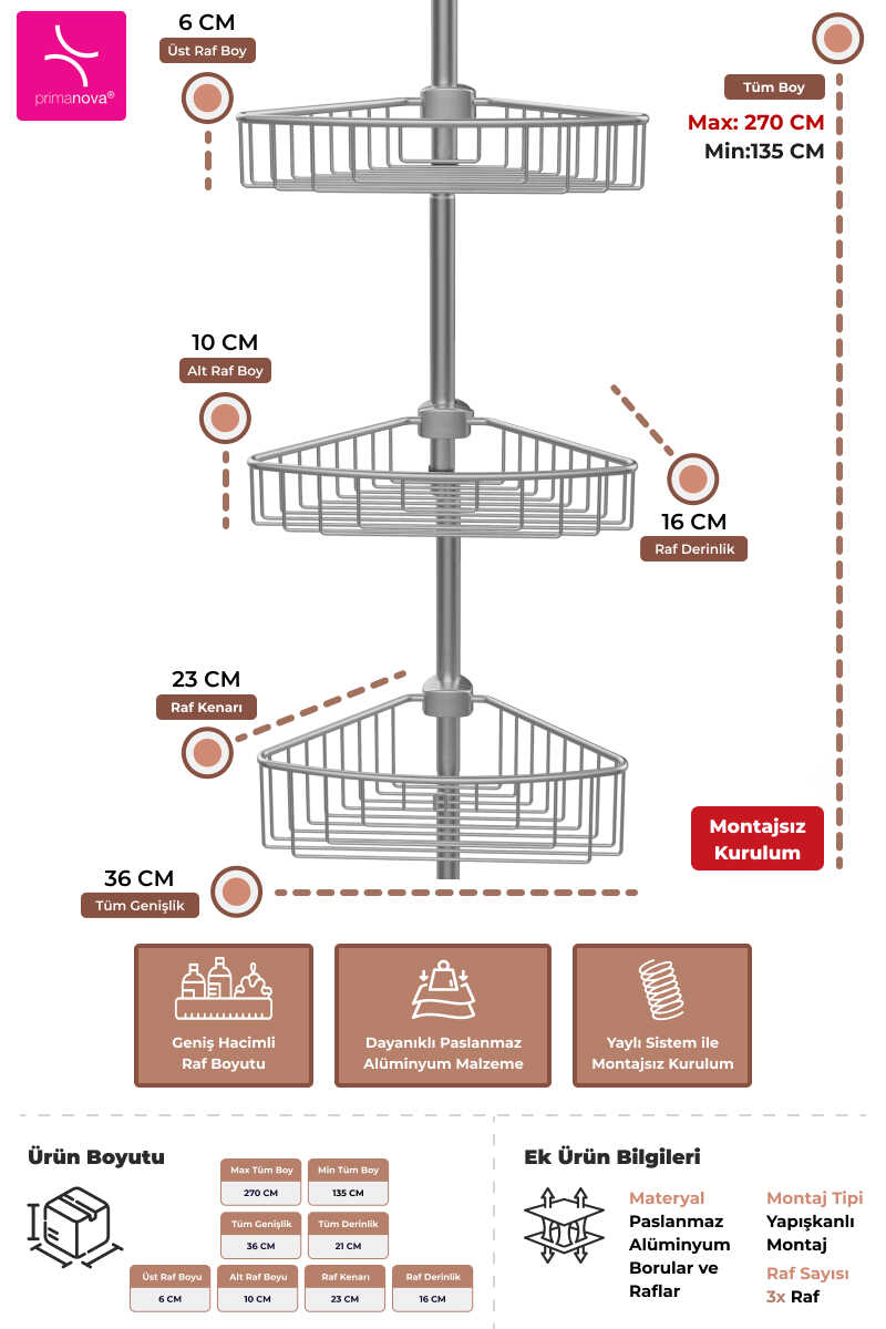 Primanova Paloma Alüminyum Yaylı Köşe Rafı
