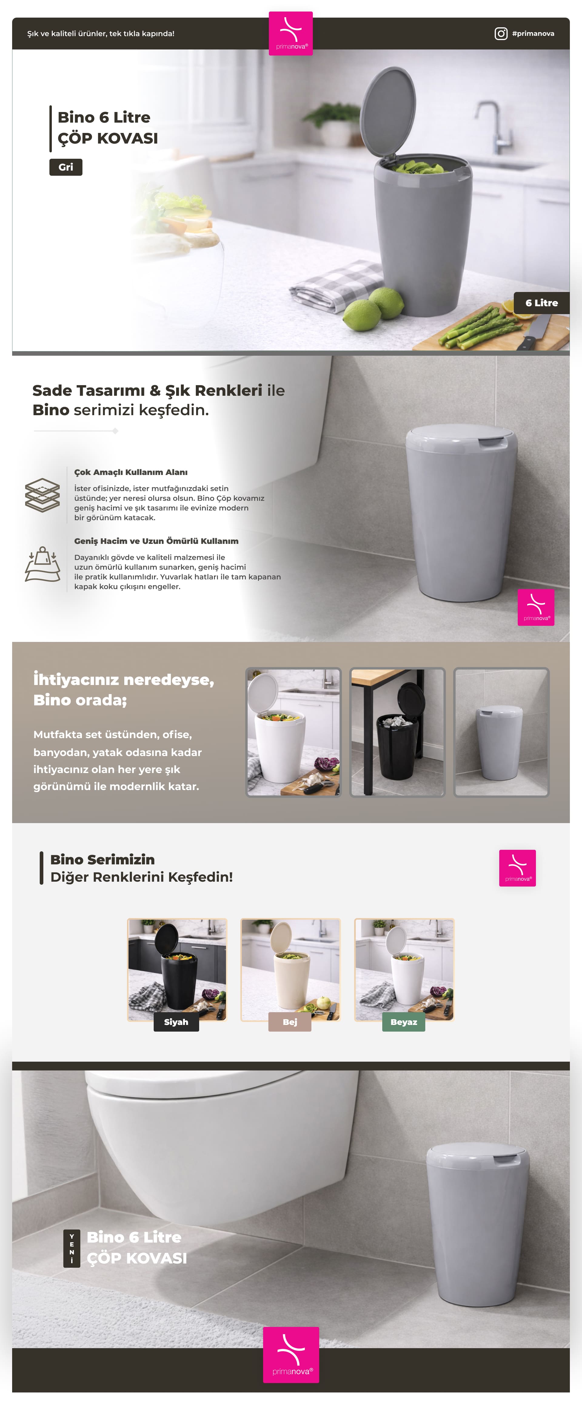 Mutfakta, banyoda ya da ofiste pratik bir çöp kovası olarak rahatlıkla kullanılabilir.
