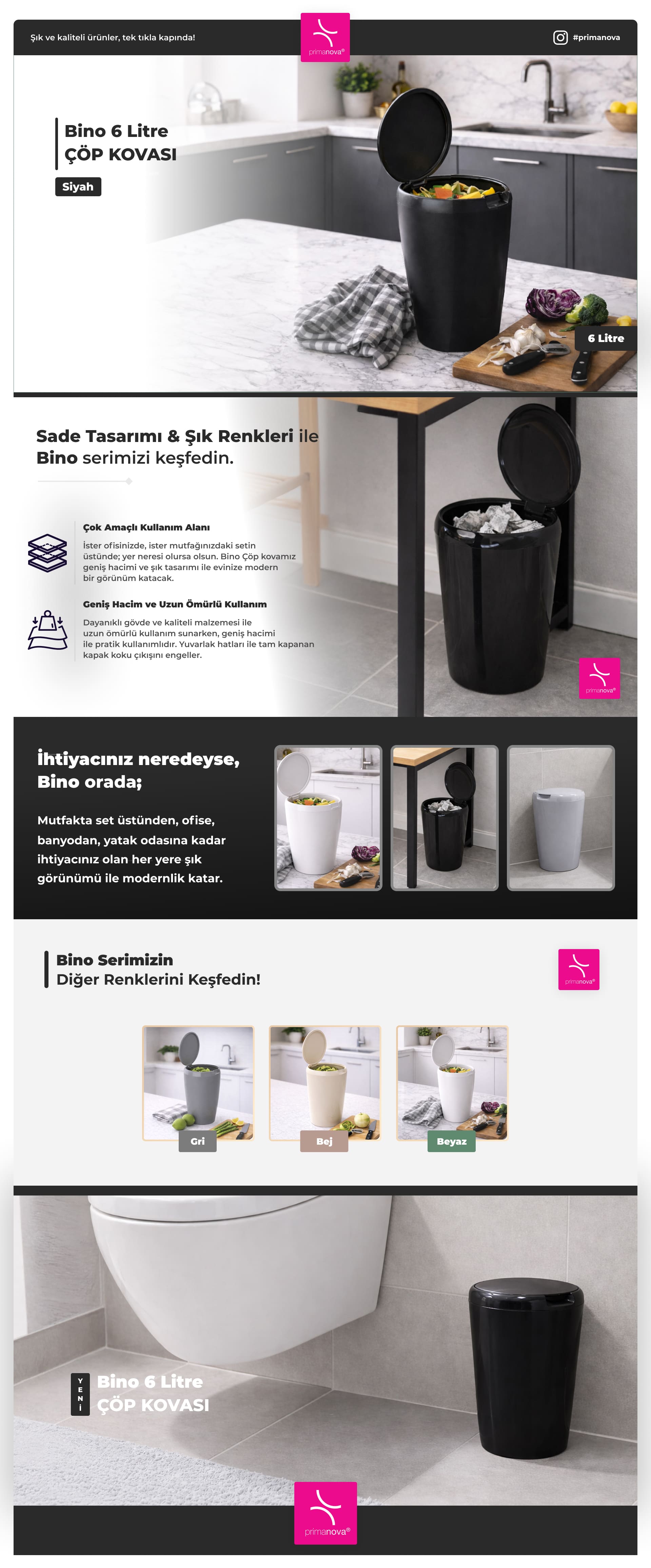 Bino 6 LT Banyo Mutfak Tezgah Üstü Çöp kovası - Siyah