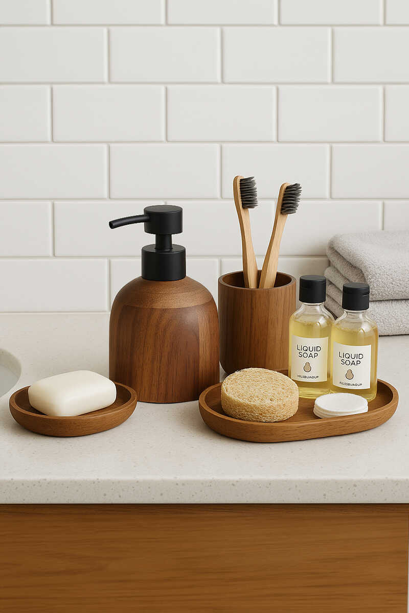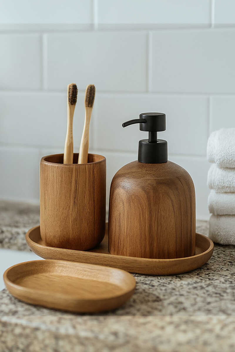 Ceviz ağacının sıcak tonlarıyla hazırlanmış bu set, banyolara rustik ve şık bir hava katar. Ahşap yapısı estetik görünüm sağlarken, kaliteli işçilik ile uzun süreli kullanım sunar.