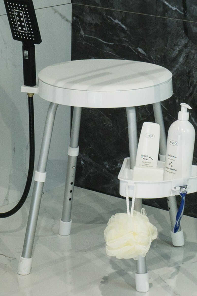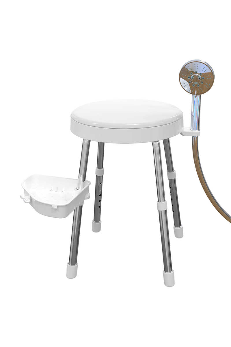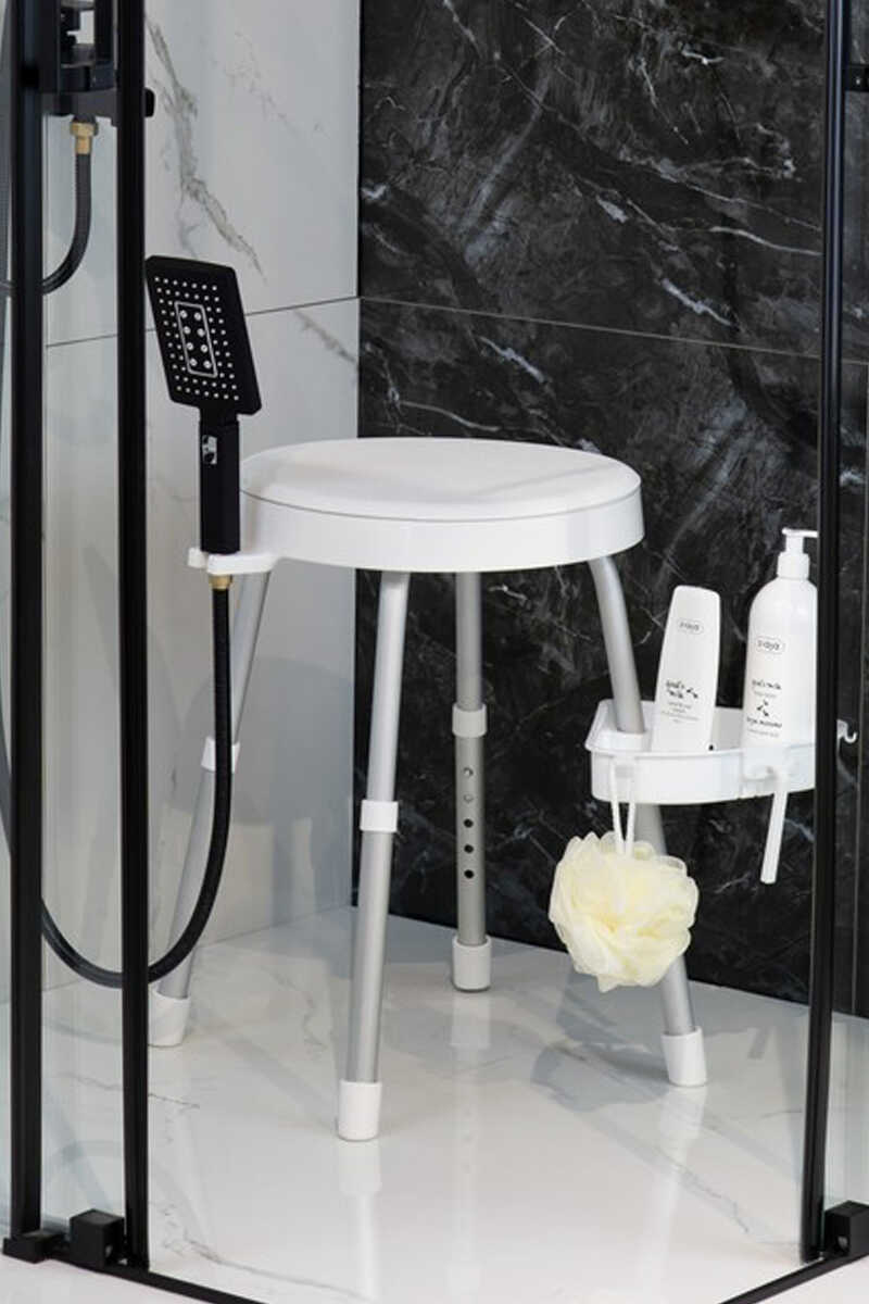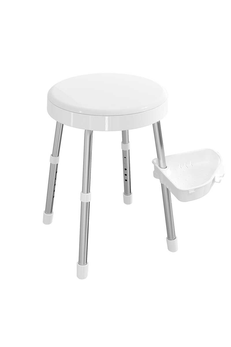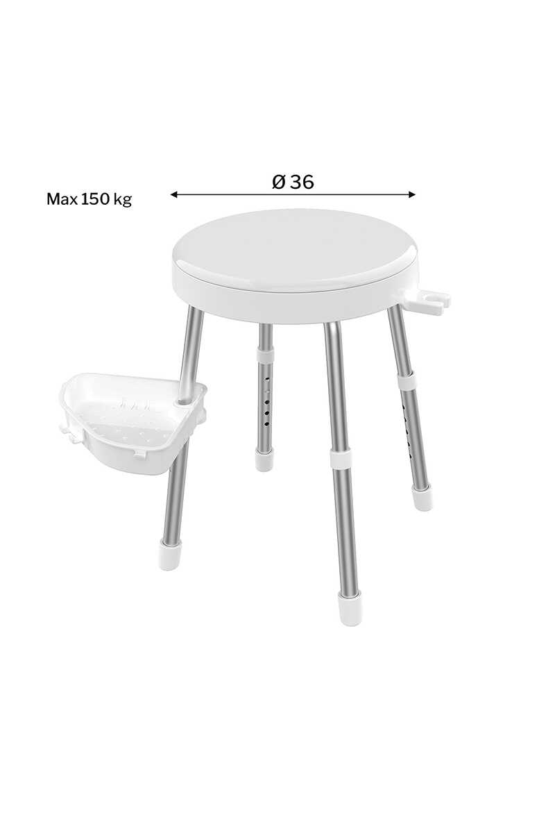 Primanova Döner oturaklı tabure Tamamı paslanmayan malzemeden üretilmiştir.Yumuşak tabanlı kaymaz ayaklar Ergonomik tasarım, duş ahizesini koymak için alanlarTercihe bağlı olarak dönerek oturak altına saklanabilen rafı bulunur.150 kg'a kadar ağırlık altında güvenli çalışabilir.Kolay kullanım için 360 derece dönebilen üst tablaKullanım alanı: 36 CM Ürün Ölçüleri: 36x41-51CM Renk: Beyaz
