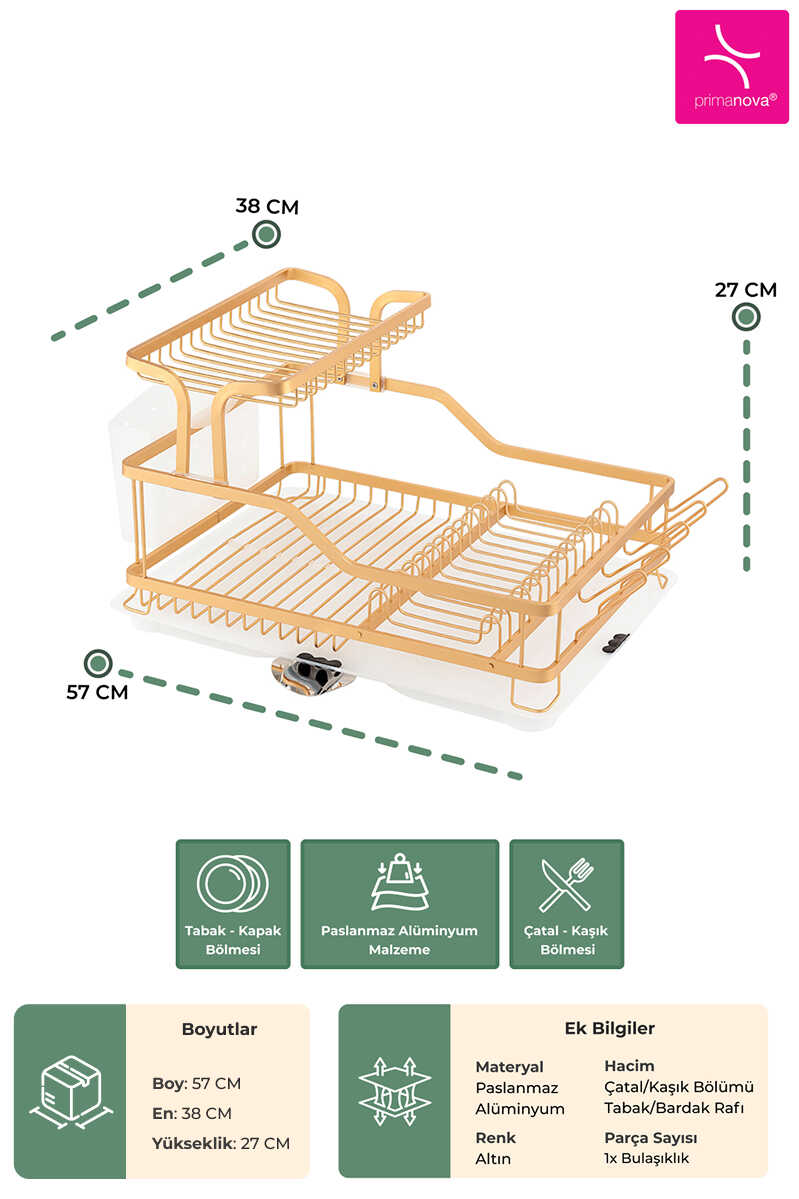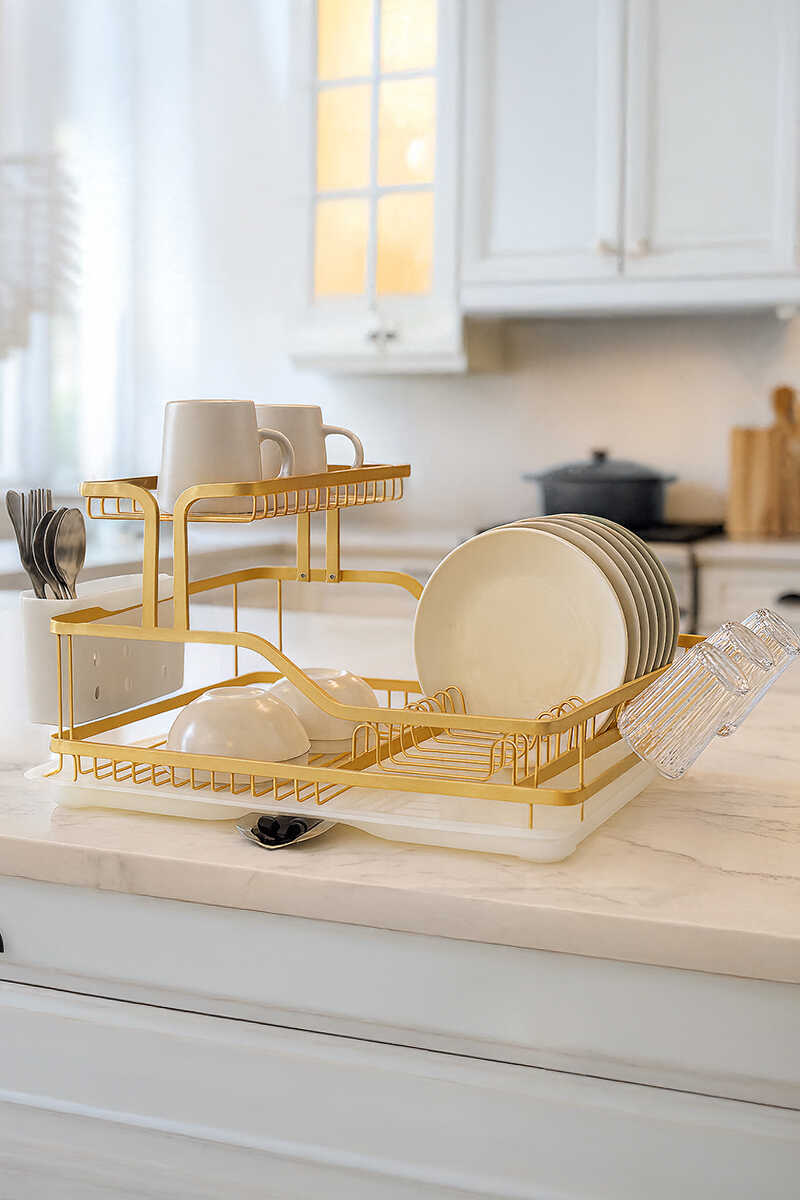 Blanca Paslanmaz Alüminyum 2 Katlı Bulaşıklık - Altın
