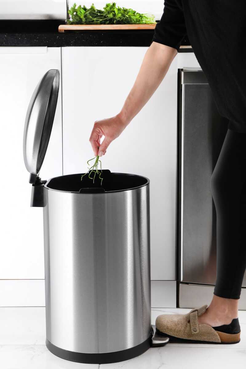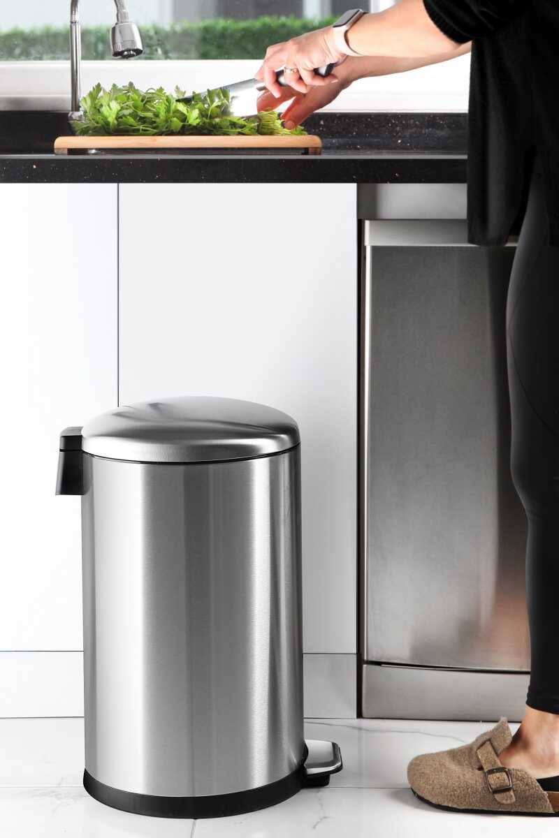 Bombe Kapaklı Çöp Kovası 30 LT Krom - İç Kısım Siyah