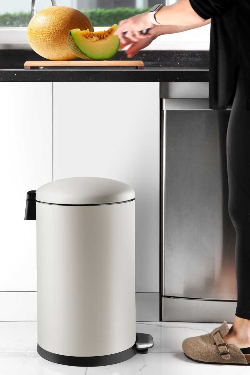 Bombe Kapaklı Çöp Kovası 30 LT Mat Bej - İç Kısım Siyah