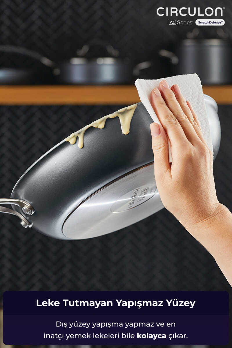 Kalın ve 3x katlı yapışmaz kaplamalı pişirme kaplarının mucitlerinden Circulon, ScratchDefense Teknolojisine sahip A1 Serisi ile mutfağınıza yenilik getiriyor.