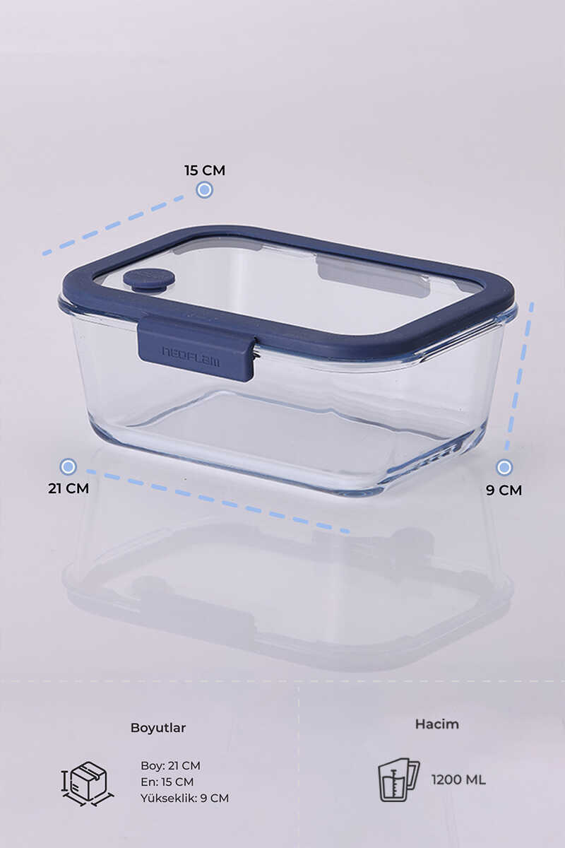 Fika Glace Vakumlu Cam Saklama Kabı 1200ML Mavi