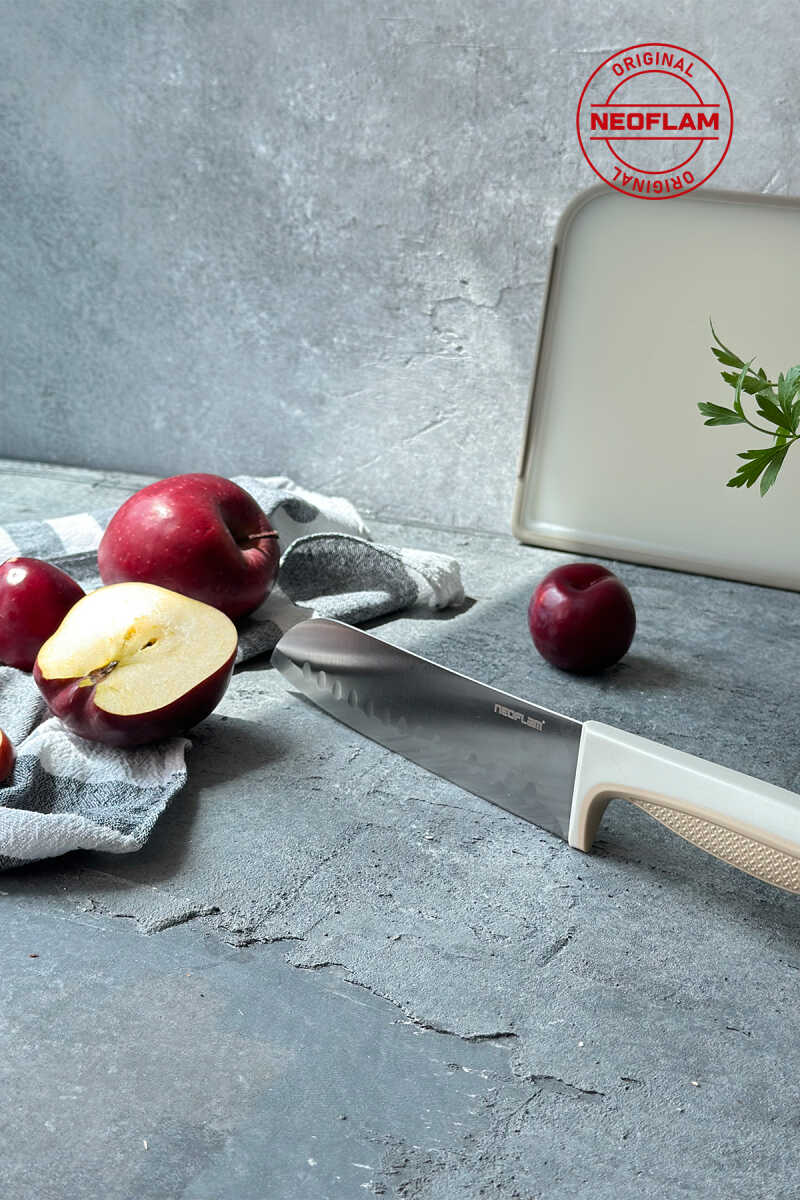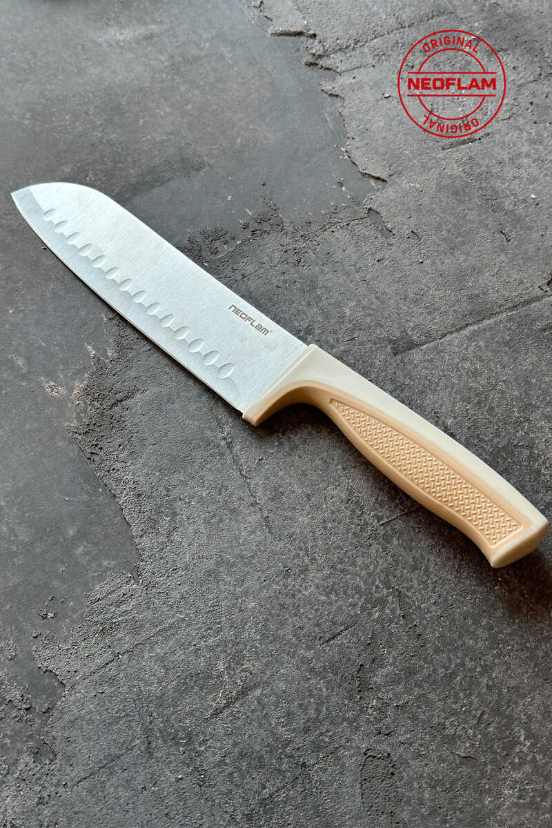 Neoflam Fika microban santoku bıçak 18 CM bej Yüksek karbon katkılı paslanmaz çelik bıçak. -Antibakteriyel özellikli microban sap. -Sap kısmındaki destek tasarımı kavrama kolaylığı sağlar. Böylece güvenli kullanım ve mükemmel bir denge sağlanır. -Bıçak gövdesinin konik formda taşlanmış olması kesme ve doğrama esnasında sağlamlık ve uzun süreli keskinlik sağlar. KULLANIM & BAKIM -Bulaşık makinesinde yıkanabilir ancak uzun ömürlü kullanım için elde yıkama tavsiye edilir. -Kullanırken kesme tahtası kullanınız. -Kemikli gıdaların doğranmasında kullanmayınız. -Donmuş gıdaların doğranmasında kullanmayınız. -Bıçağı temizlemek için kullanılan sert- aşındırıcı maddeler bıçak üzerinde kalıcı çizikler bırakabilir.;