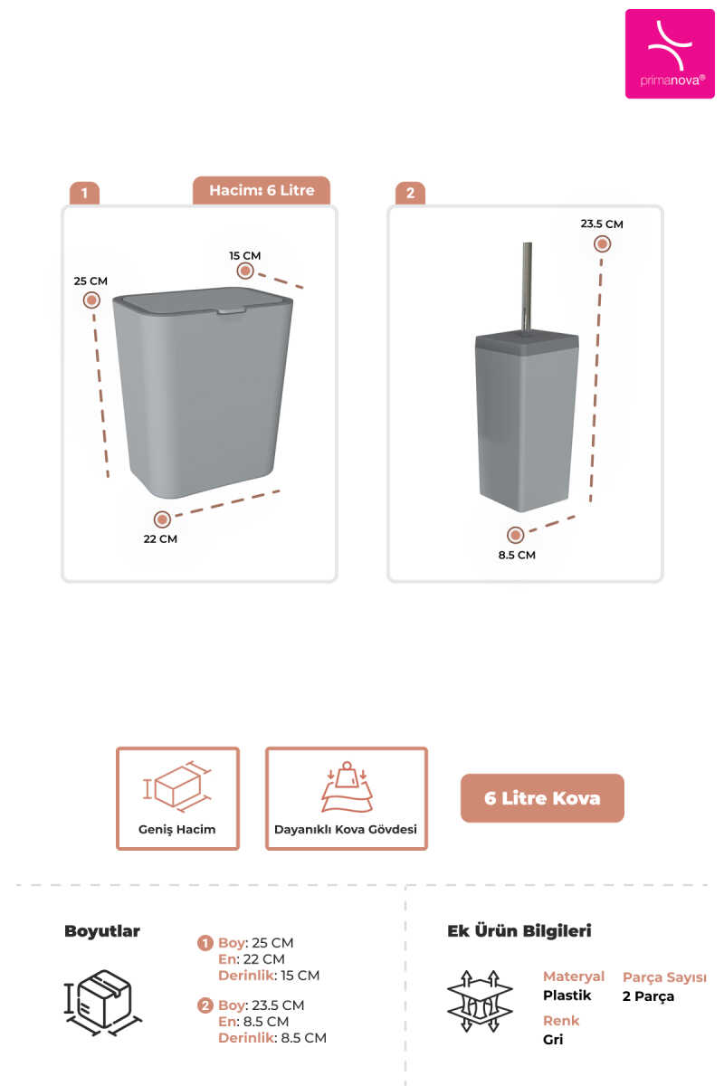 Parça Sayısı: 1 Adet Kova + 1 Adet Tuvalet Fırçası