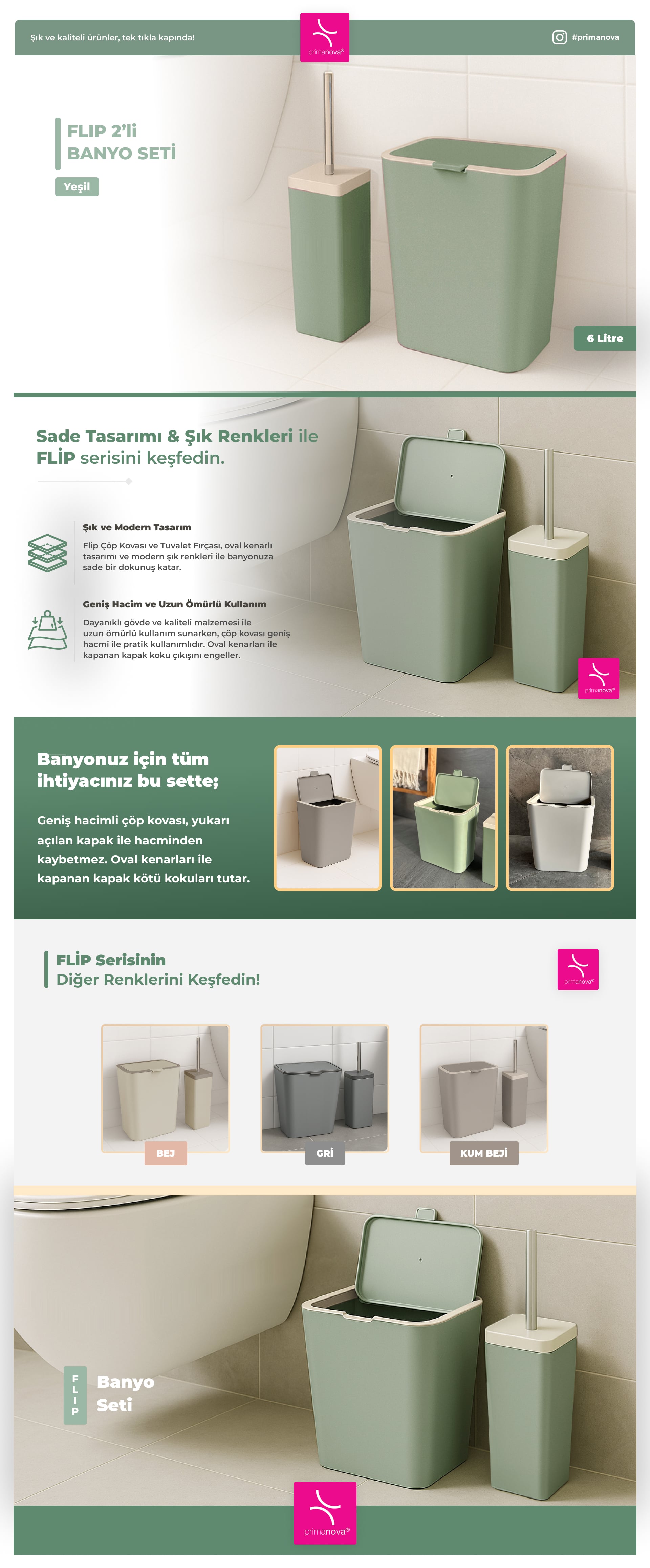 Flip banyo seti serisi, kompakt boyutu ve modern tasarımıyla banyonuzun her köşesinde düzen sağlar.