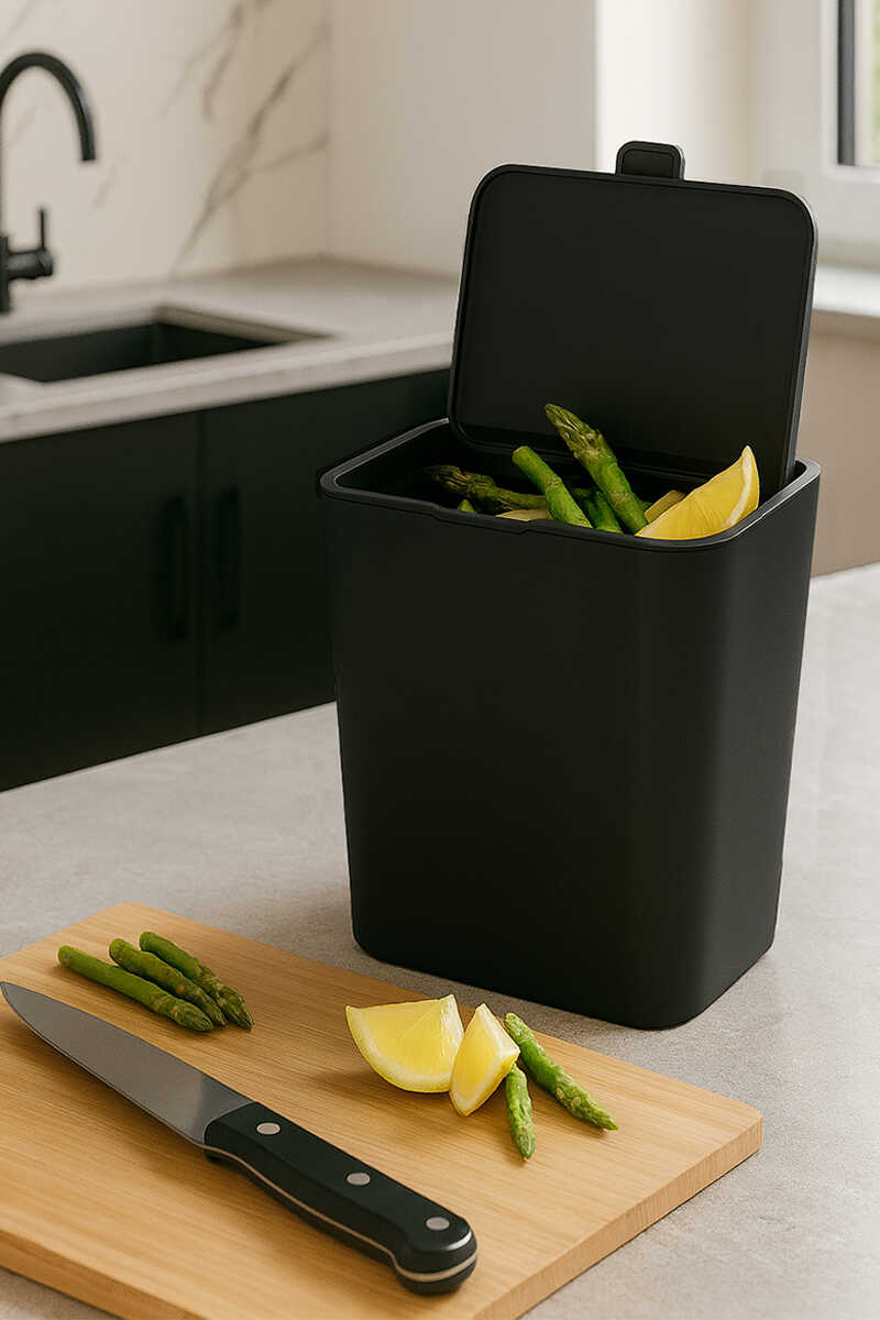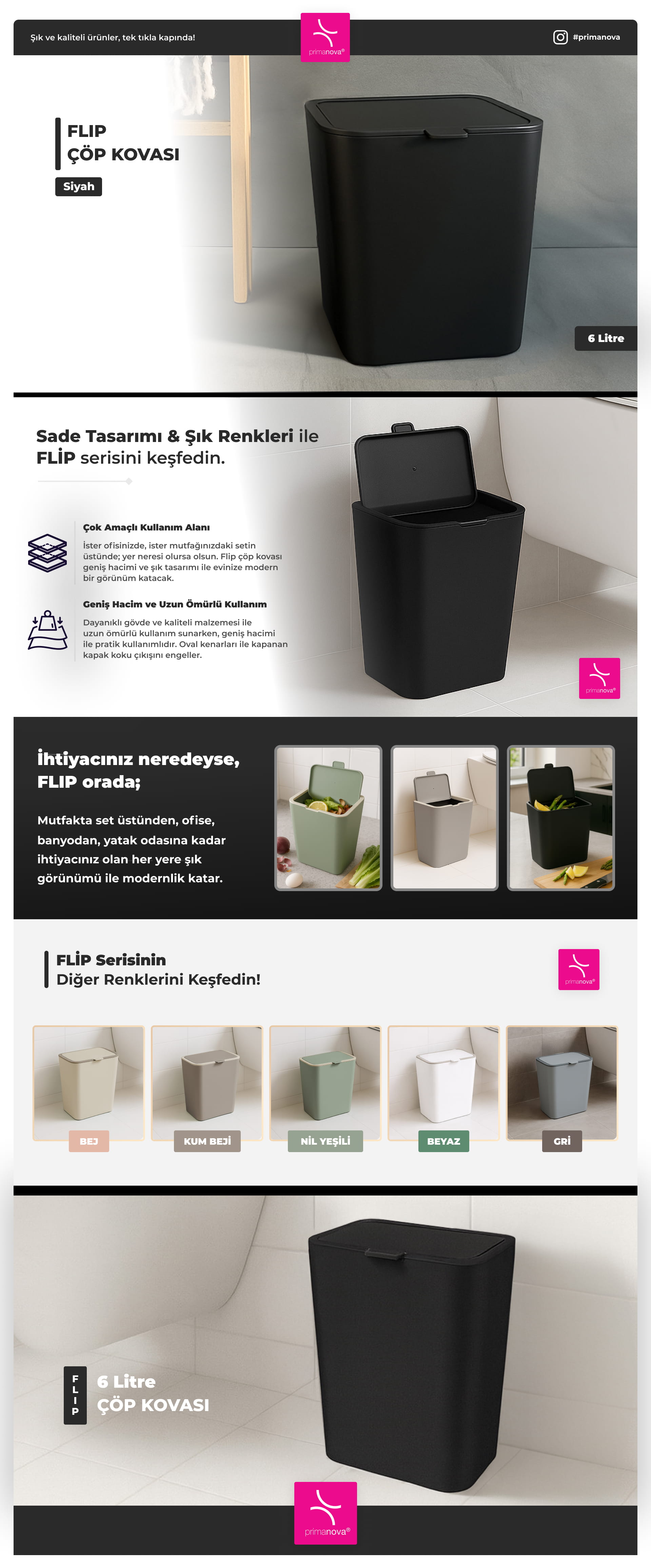 Flip Çöp Kovası, kompakt boyutu ve modern tasarımıyla evinizin her köşesinde düzen sağlar.
