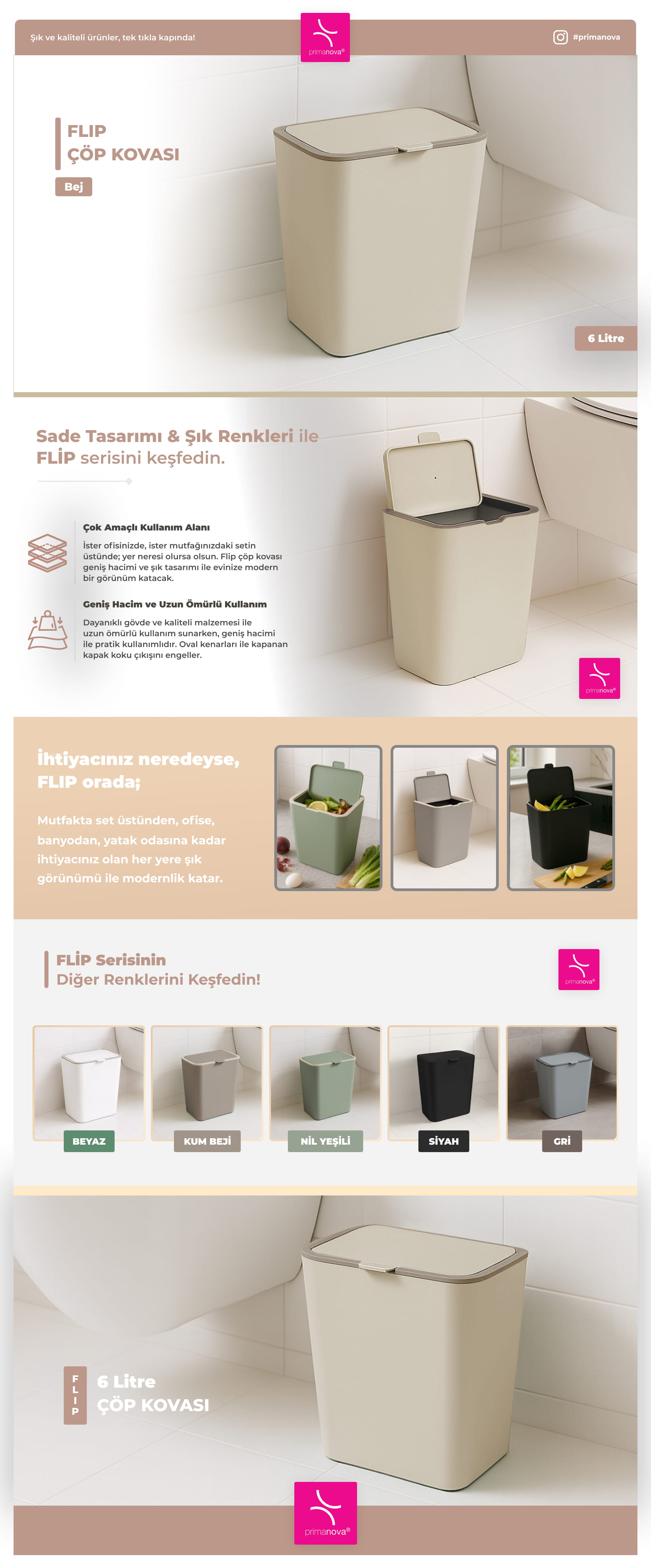 Flip Çöp Kovası, kompakt boyutu ve modern tasarımıyla evinizin her köşesinde düzen sağlar.