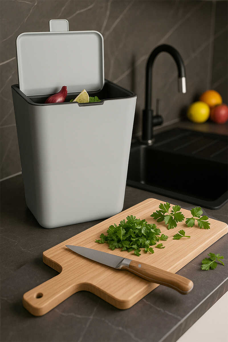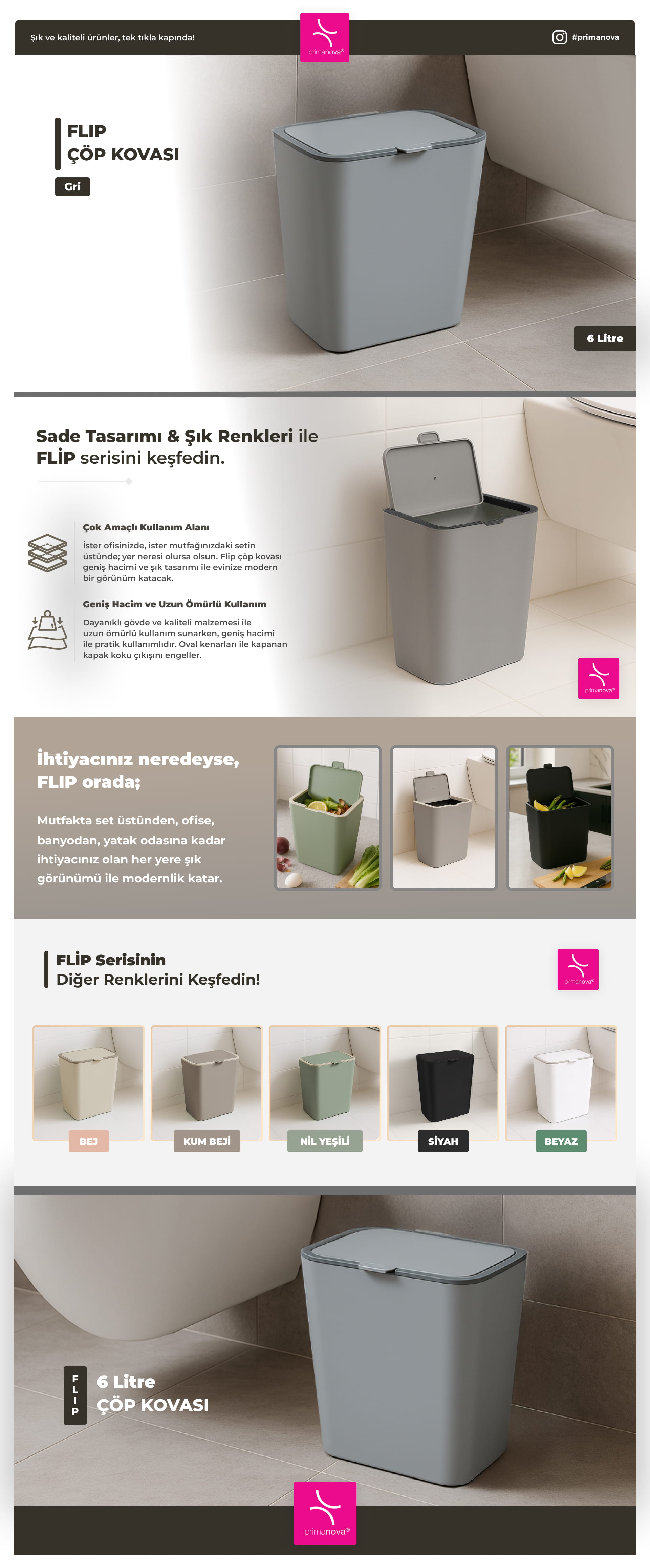 Flip Çöp Kovası, kompakt boyutu ve modern tasarımıyla evinizin her köşesinde düzen sağlar.