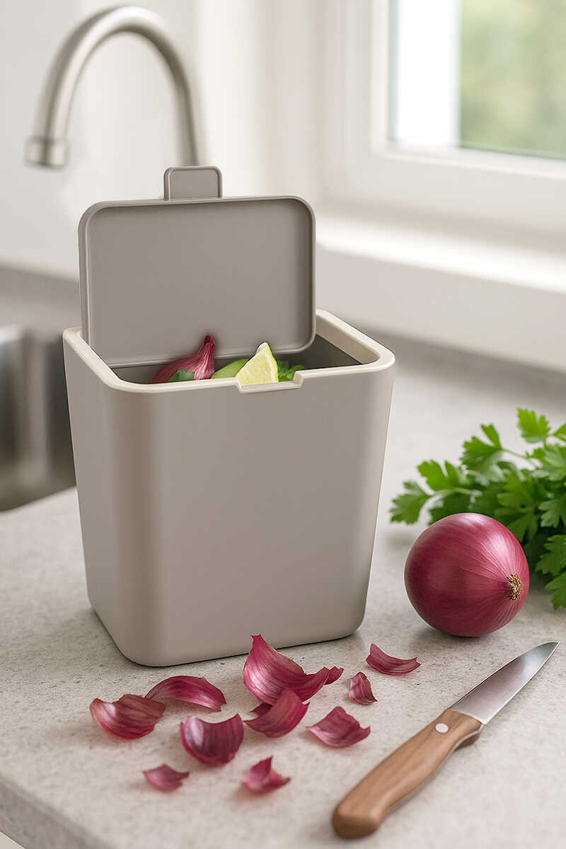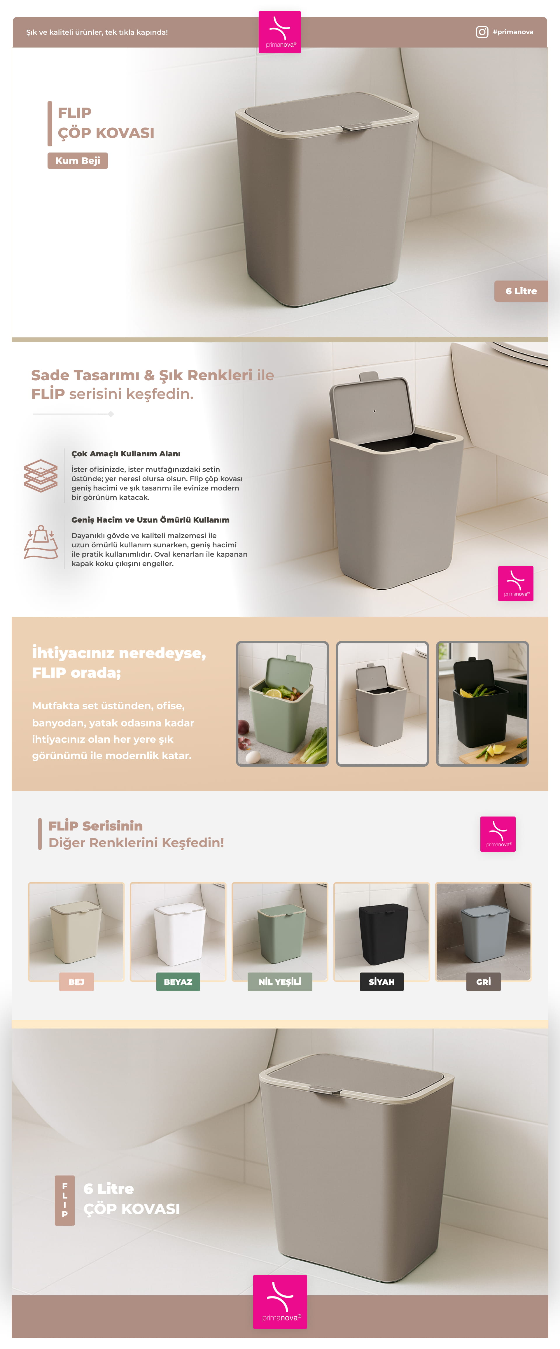 Flip Çöp Kovası, kompakt boyutu ve modern tasarımıyla evinizin her köşesinde düzen sağlar.