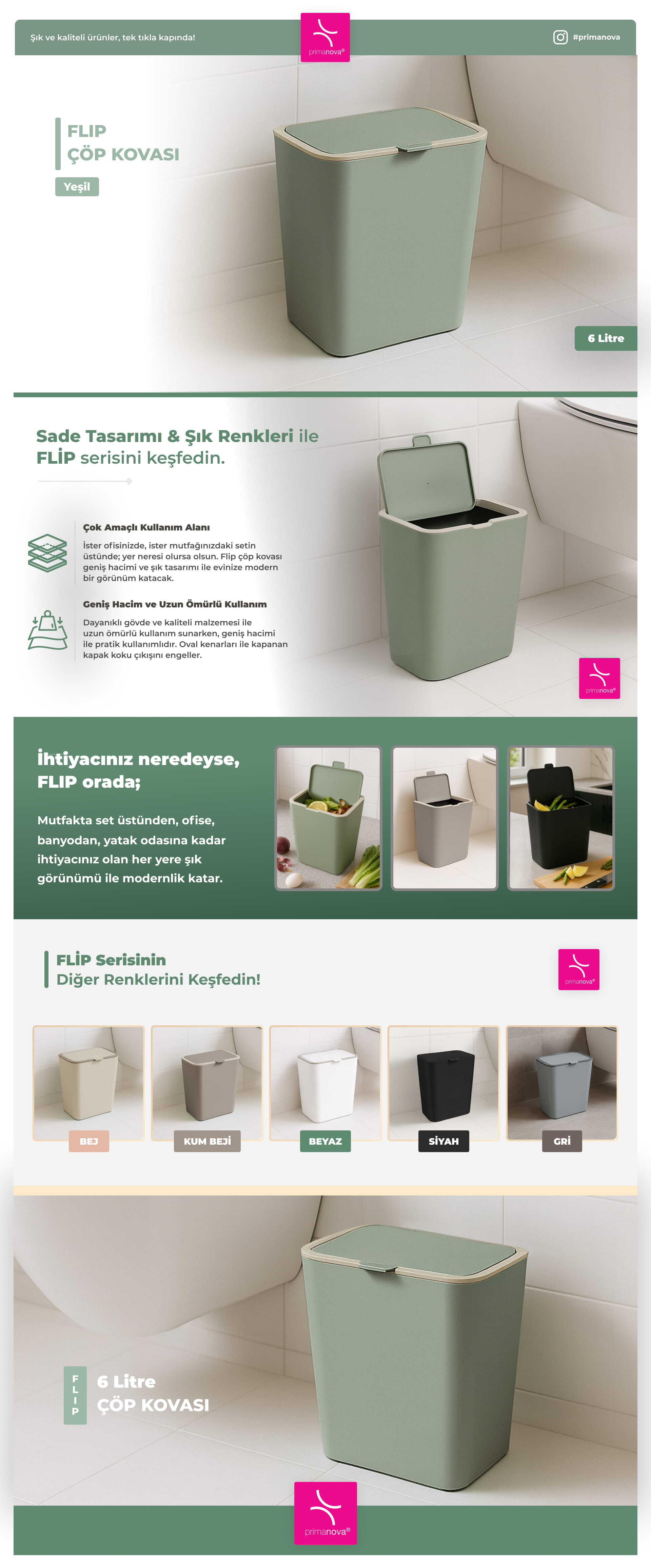 Flip Çöp Kovası, kompakt boyutu ve modern tasarımıyla evinizin her köşesinde düzen sağlar.