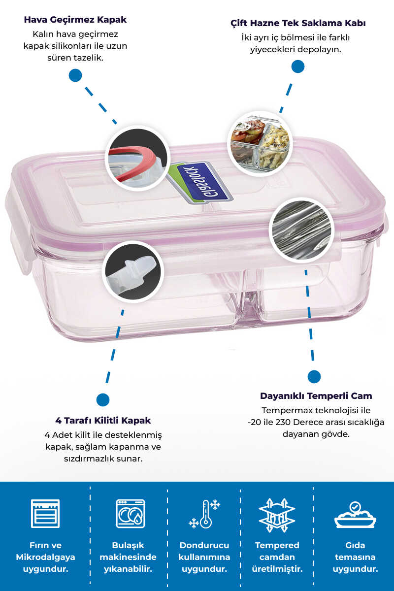 -20 dereceden 230 dereceye kadar ısı ve soğuk dayanıklılığı sağlayarak, içeriğini muhafaza eder.