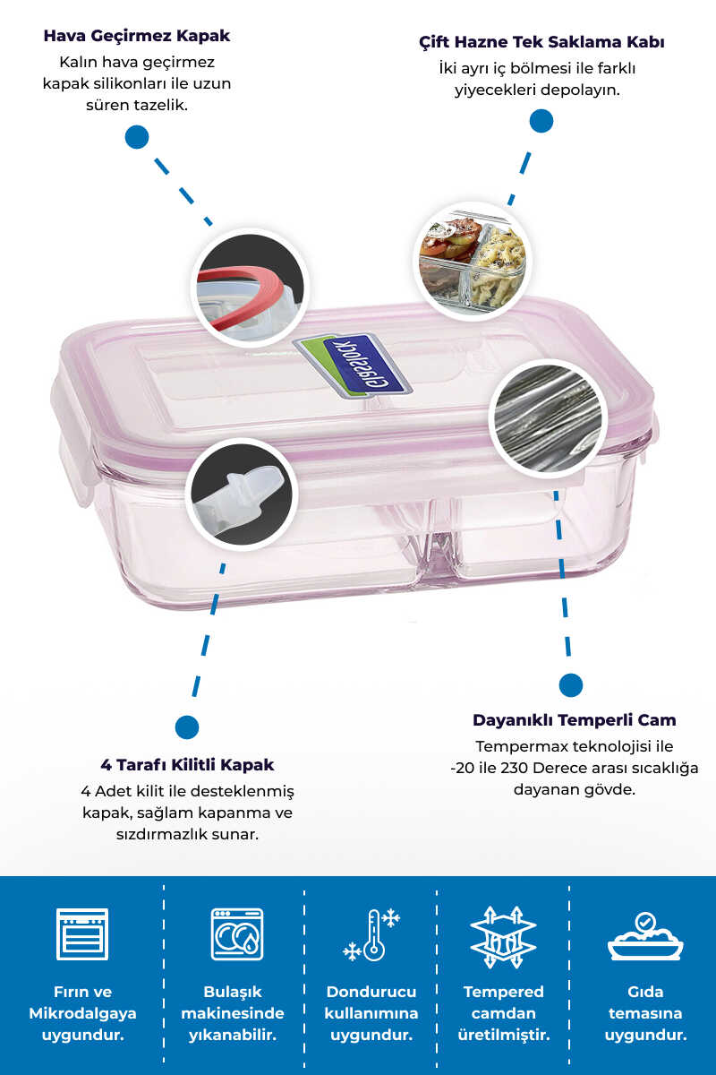 -20 dereceden 230 dereceye kadar ısı ve soğuk dayanıklılığı sağlayarak, içeriğini muhafaza eder.