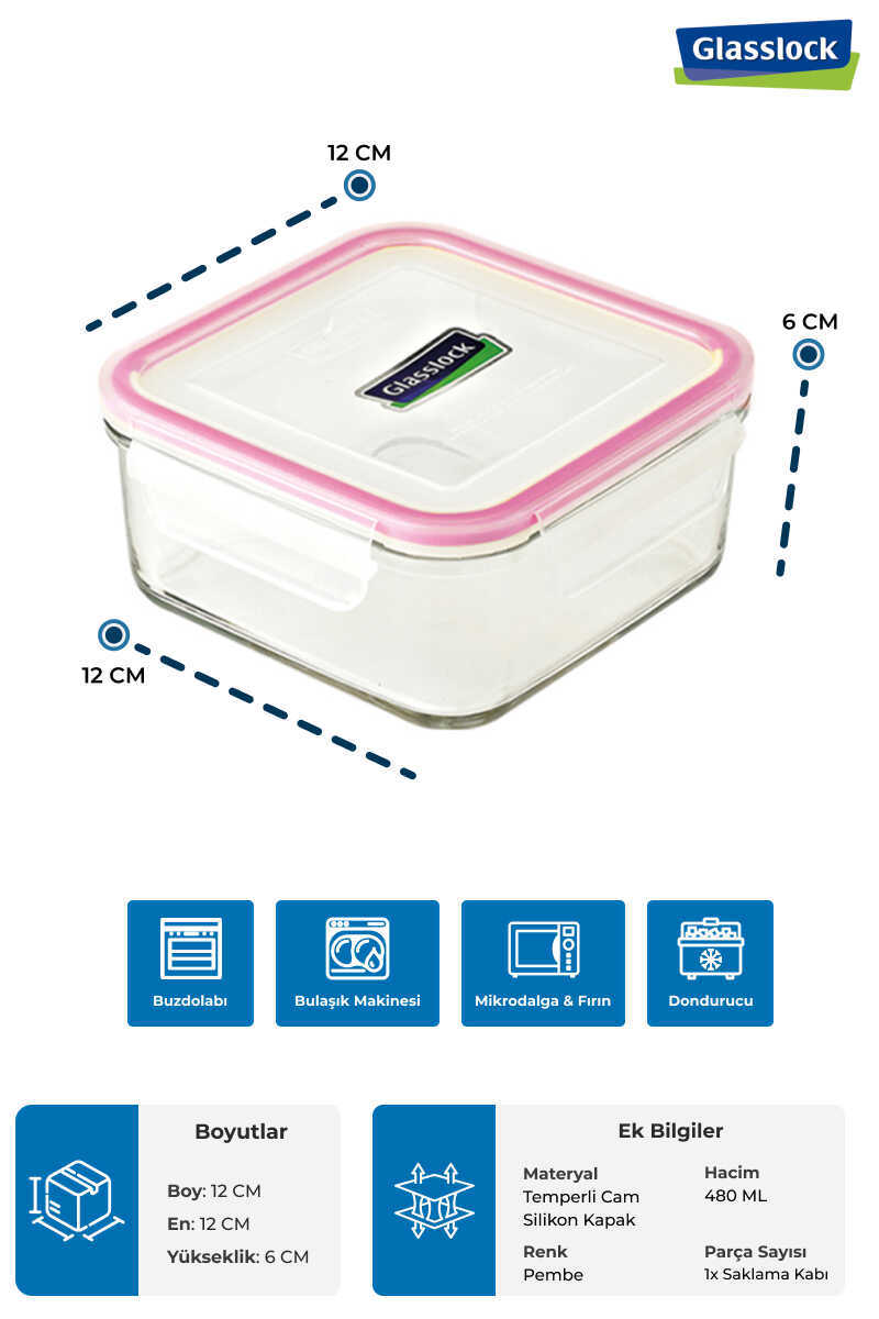 Glasslock Kare Cam Saklama Kabı 480 ml ;Ürün Ölçüleri: 124 x 124 x 64 mm.;Ürün Ağırlığı: 350 Gr.;PP Kapa;Silikon Civata;Kompakt Tasarım;Derin dondurucuda kullanılabilir.; Bulaşık Makinesinde yıkanabilir.;Mikrodalga Fırında Kullanılabilir.;Dayanıklı Temperli Cam. (-20°C'den 230°C'ye kadar ısıya dayanıklıdır.);Toksit İçermez.;Tüm Glasslock ürünleri CO2 emisyonunu azaltmak için soda külünden yapılmış doğa dostu ürünlerdir.