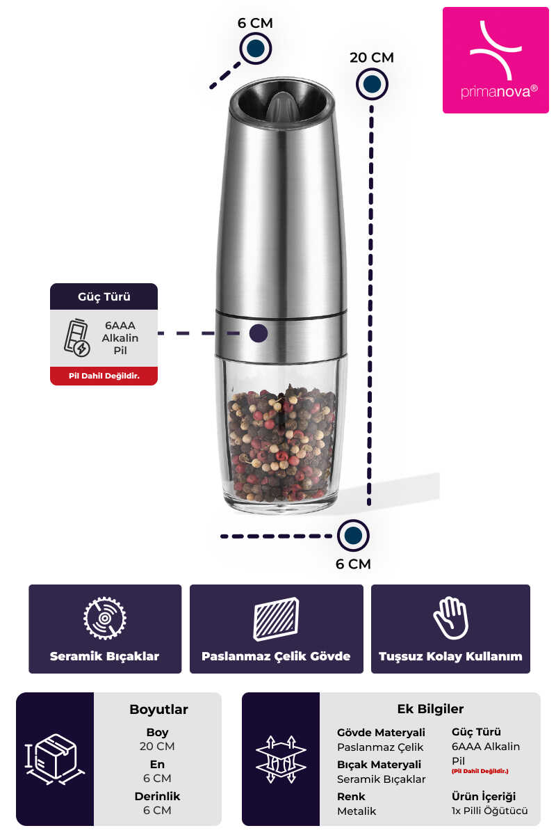 Ürün İçeriği: 1x Pilli Öğütücü (Pil dahil değildir.)