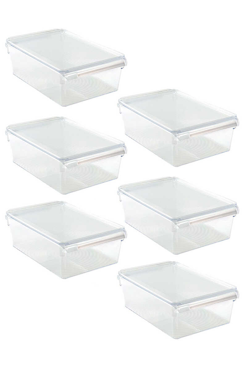 Kapaklı Buzdolabı Içi Organizer Dolap Içi Düzenleyici Saklama Kabı 325*205*100 Mm Şeffaf 6 Lı