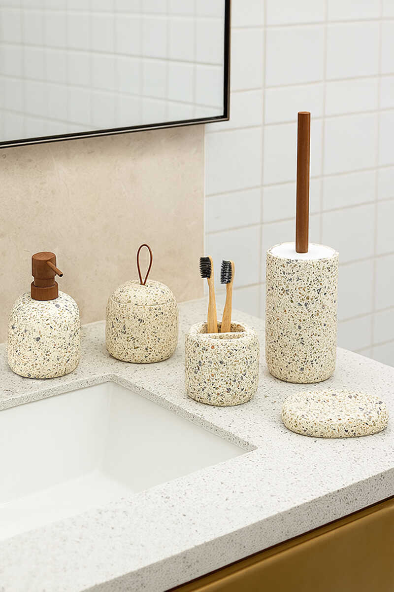 Doğal taş desenli görünümüyle banyonuzda doğal bir atmosfer yaratır. Poliresin malzemesi suya dayanıklıdır ve uzun yıllar kullanılabilir.