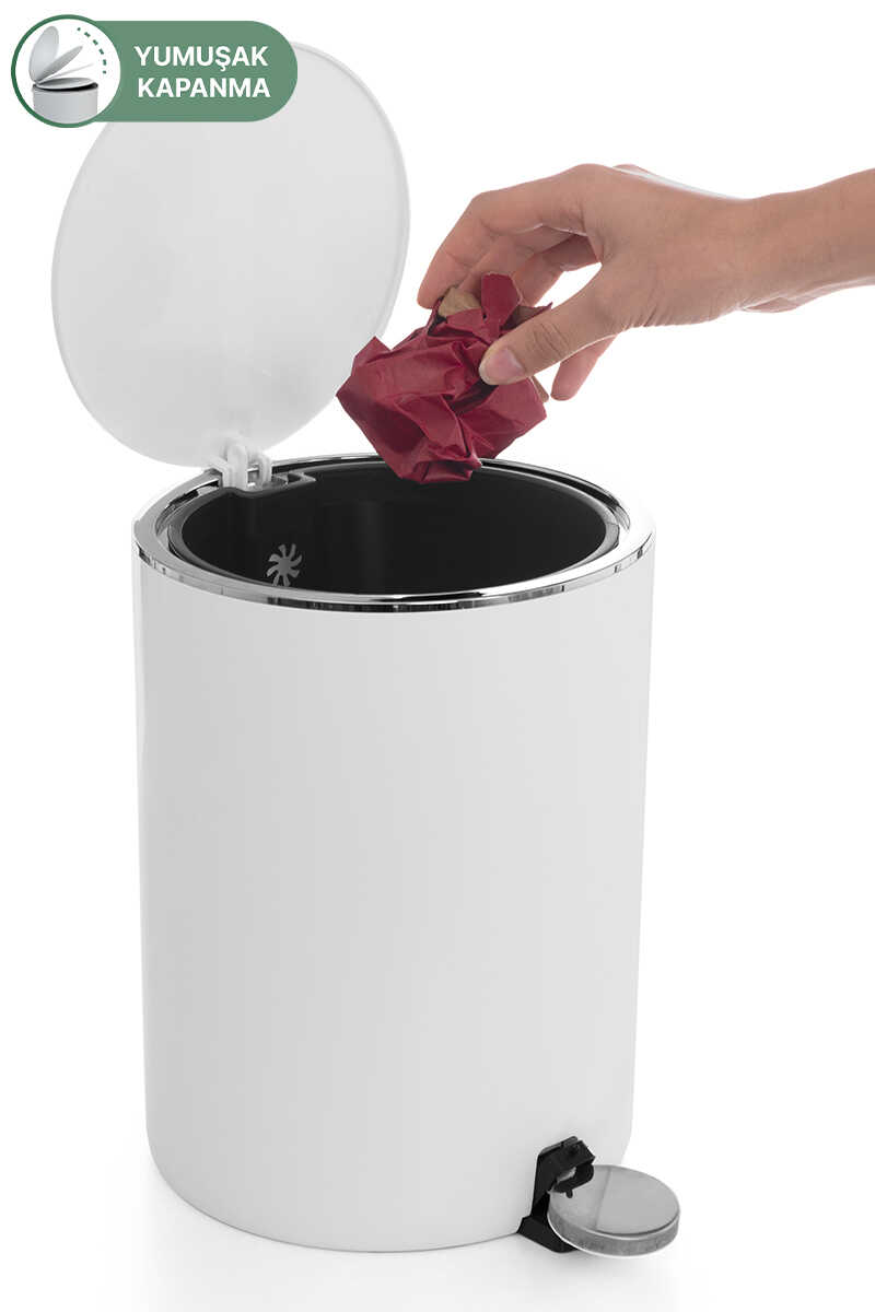 Lenox Çöp Kovası Plastik (Pedal Kısmı Paslanmaz Çelik) Ürün Hacmi 5 LT Ürün Ölçüleri ; Boy: 28 CM ; Çap:21 CM Ürün Rengi: Beyaz İç Kovası bulunmaktadır. Yavaş kapanır kapak mekanizması mevcuttur. Parmak izi bırakmaz. Pedallar paslanmaz çeliktir Geliştirilmiş sağlam pedal sistemi