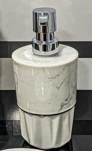 Mermer desenli sıvı sabunluk seramik malzemeden üretilmiştir.