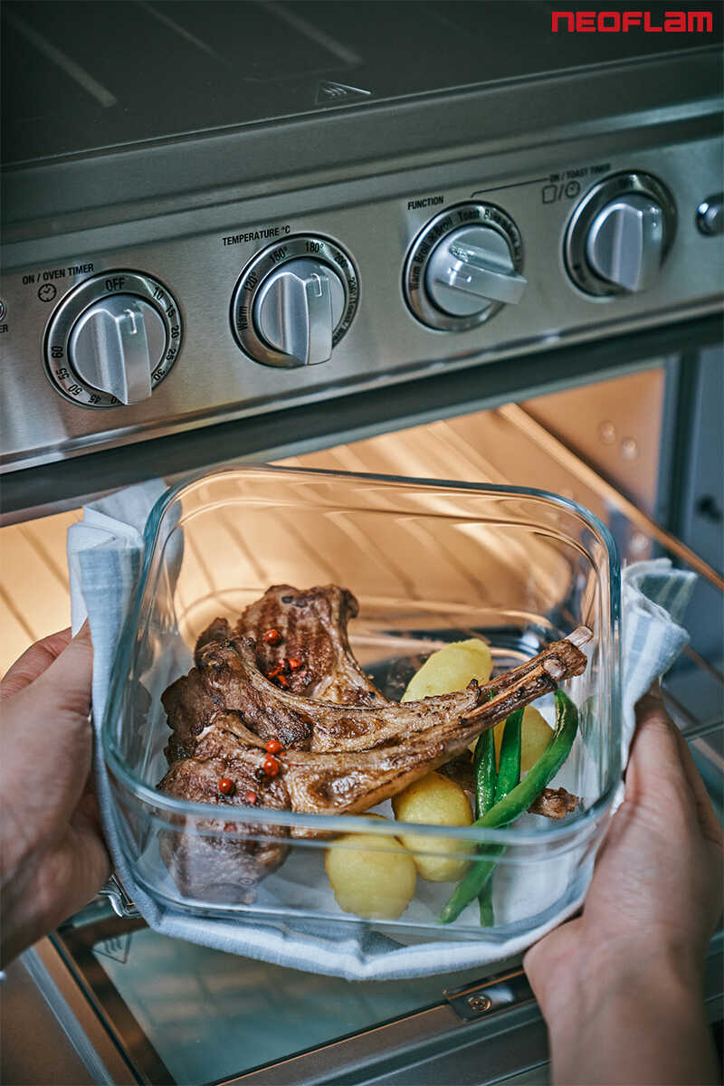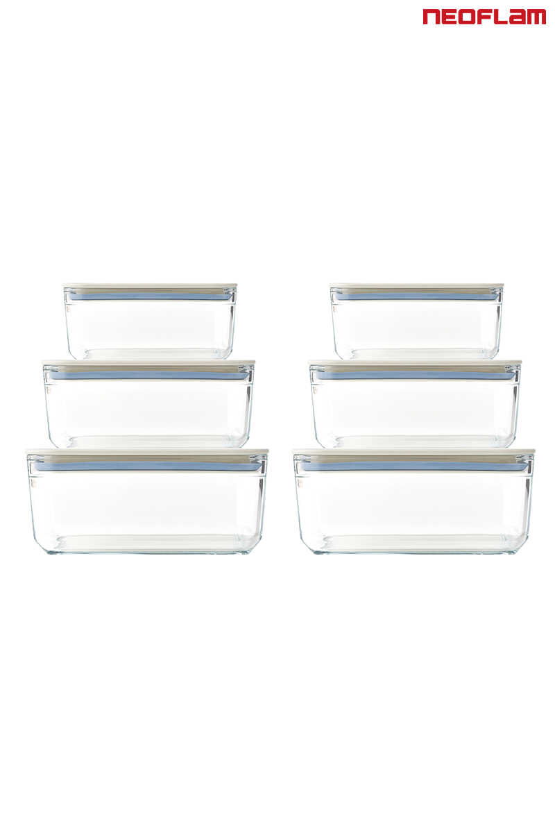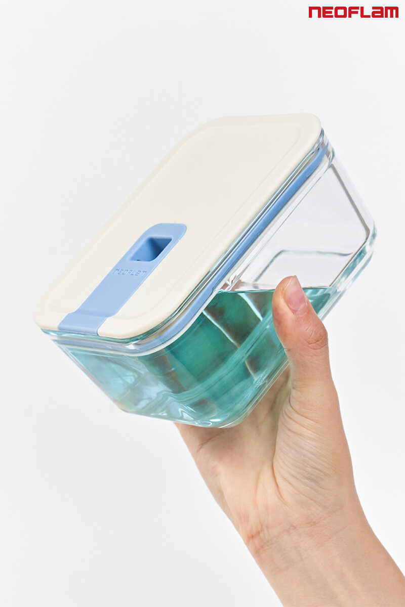 Neoflam Perfect Seal dikdörtgen cam saklama kabı, mükemmel tasarımı ve 400 derece ısıya dayanıklı borosilikat cam gövdesi ile yiyeceklerinizi uzun süre ilk günkü tazeliğinde korur.