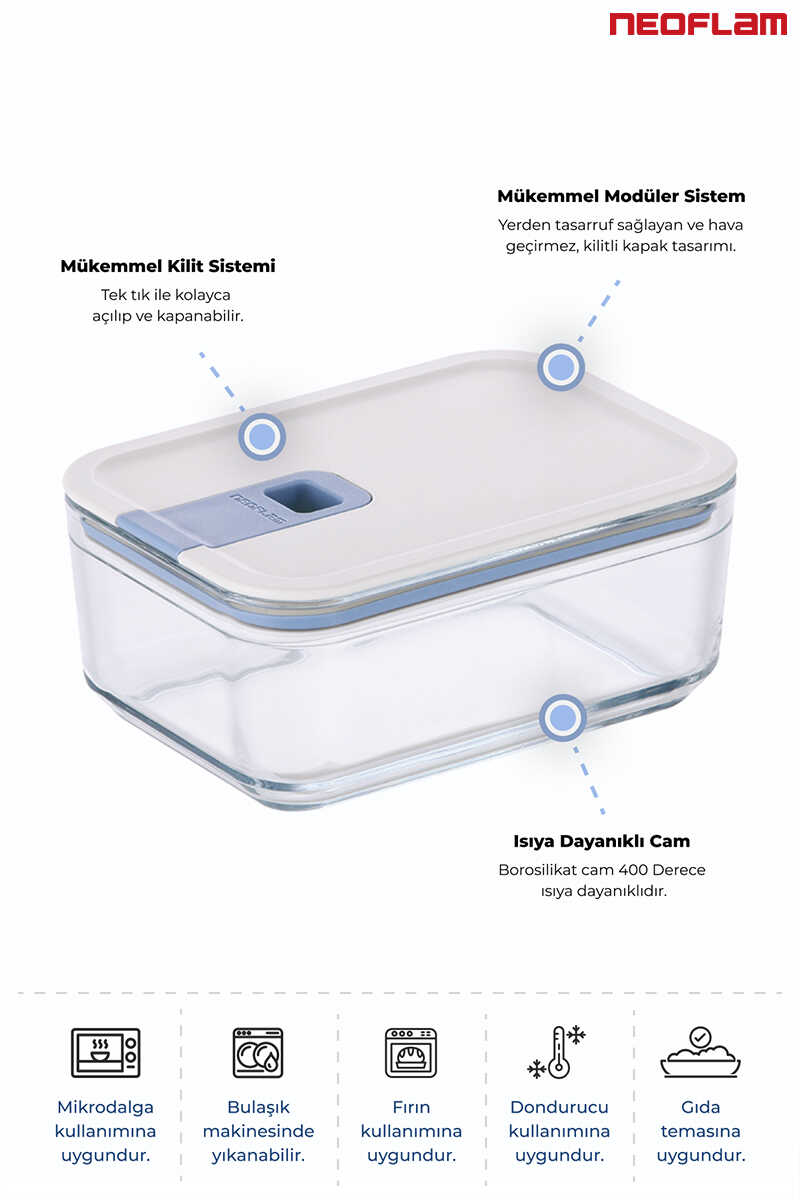 Mükemmel hava mührü ve koruması sağlayan tasarımı ile buzdolabından, derin dondurucuya kadar saklama imkanı sunarken, borosilikat malzemesinden üretilen gövdesi ile normal fırın ve mikrodalgada yiyeceklerinizi ısıtma imkanı sunar.