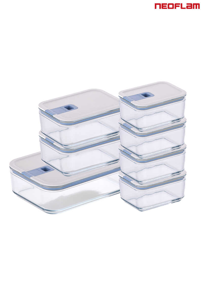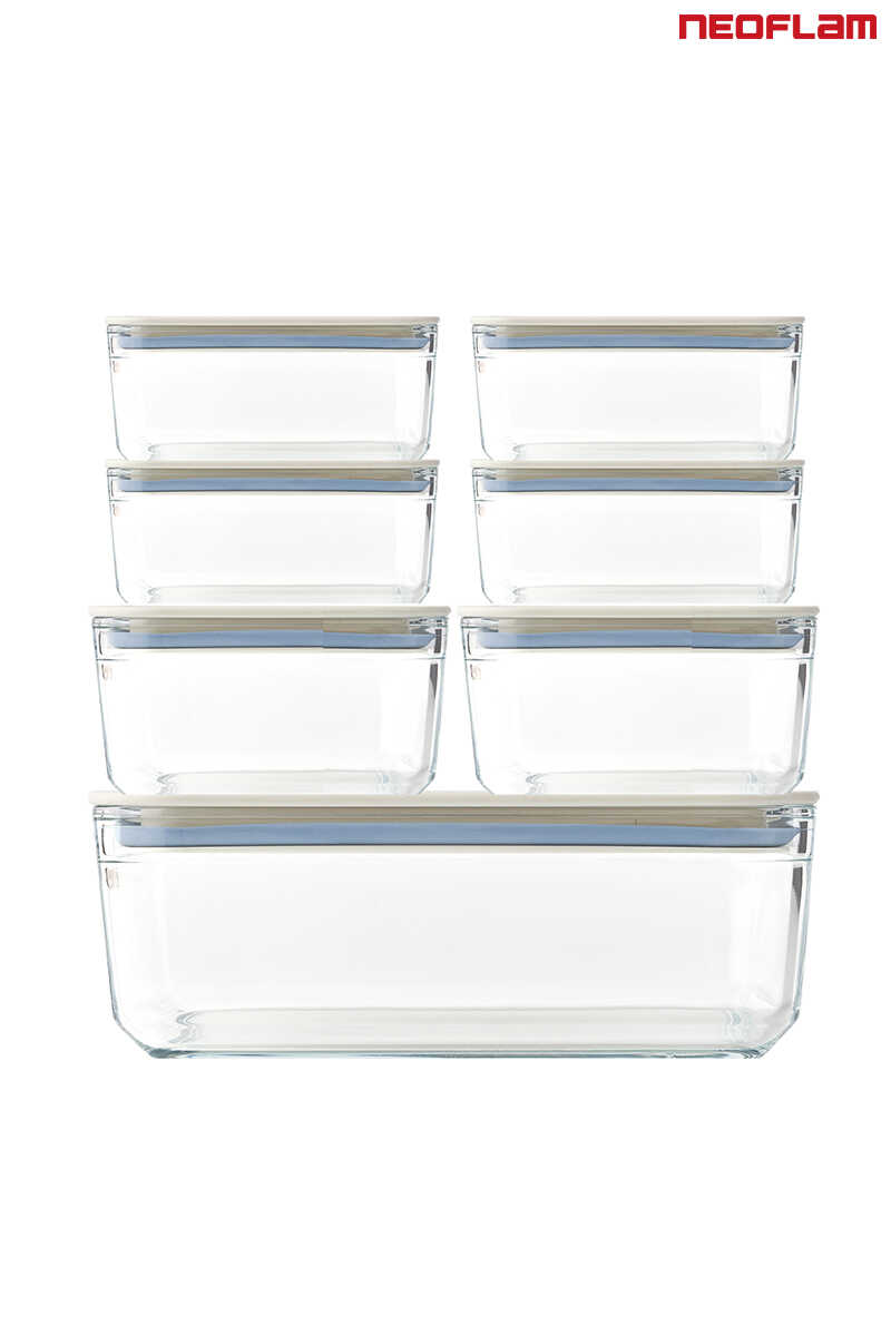 Neoflam Perfect Seal dikdörtgen cam saklama kabı, mükemmel tasarımı ve 400 derece ısıya dayanıklı borosilikat cam gövdesi ile yiyeceklerinizi uzun süre ilk günkü tazeliğinde korur.