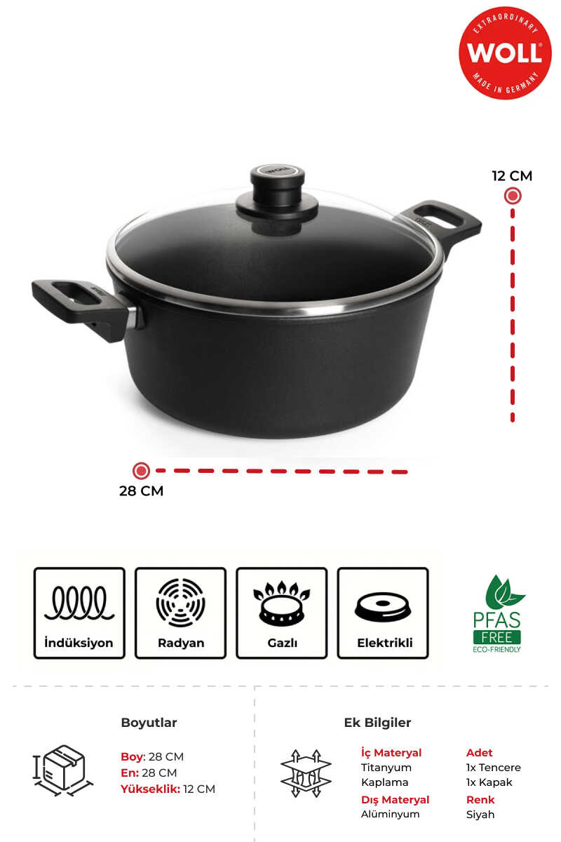 WOLL titanyum kaplı derin tencere PRATİK - KOLAY SAKLAMA - KOLAY TEMİZLEME - GÜVENLİ 40 Yıl önce bir master şefin mükemmel kızartma tavası hayali WOLL ile gerçekleşti.1979 yılında başlayan serüven devam ediyor. Özel üretim süreci ve PFOA içermeyen kaplama Hızlı ısı dağılımı ve ısı koruma Çizilme ve aşınmalara dayanıklı 4 katmanlı titanyum bazlı sert kaplama Optimal termal emilim için yaklaşık 8mm/03 kalınlıkta termal taban Diamond Lite Güçlendirilmiş köşeleri sayesinde darbelerden etkilenmez. Tencereler fırında kullanılabilir. Kulplar Max. 250°C kadar dayanıklıdır. Köşe açıları ürün içerisindeki sıvı malzemelerden kolay dökülmesini sağlar. Bulaşık makinesinde yıkanabilir. Yüksek sıcaklıkta deformasyon oluşmaz. *İndüksiyon versiyonunda uçtan uca paslanmaz çelik taban *İndüksiyon versiyonda 10mm/04 kalınlık *Ürünlerimize kapak dahildir. Yıldızlı özellikler sadece indüksiyon olan ürünlerde bulunmaktadır. İndüksiyon olup olmadığı ürünün başlığında belirtilmiştir. ALMANYA DA ÜRETİLMİŞTİR.