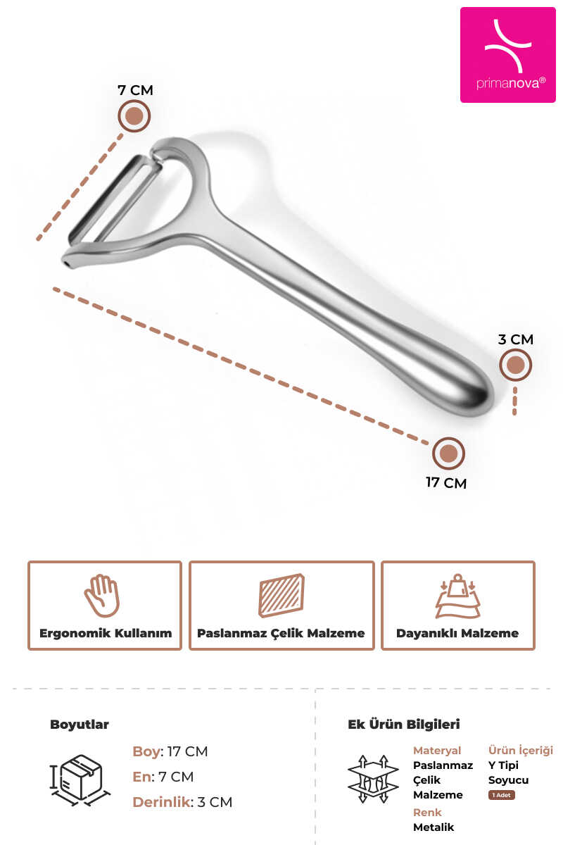 Paslanmaz çelik yapıya sahip Dikey Soyucu, dayanıklı ve uzun ömürlü kullanım sunar. Ergonomik tutamağı sayesinde kolay kavranır ve eli yormaz.