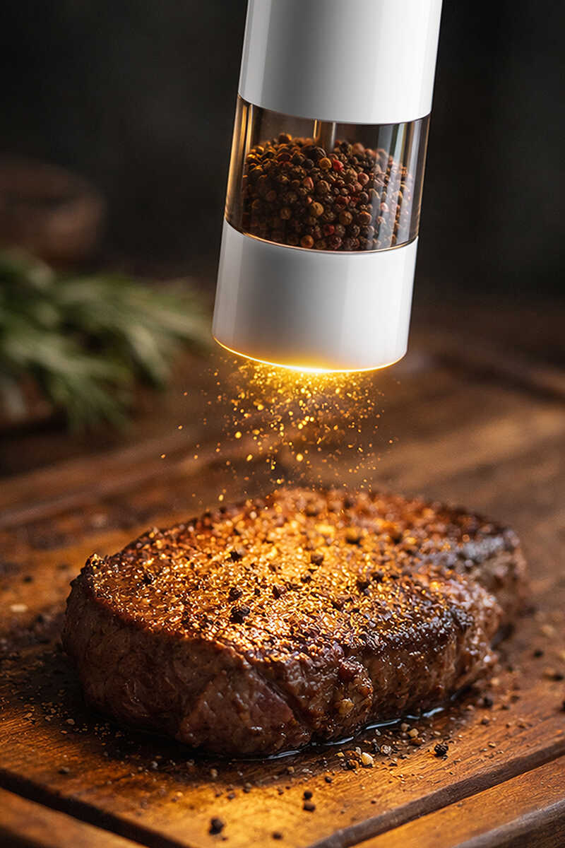 Tek tuş ile haznesindeki baharatı öğüterek servis eder. Işıklı başlık ile içeriği görmenizi sağlar.