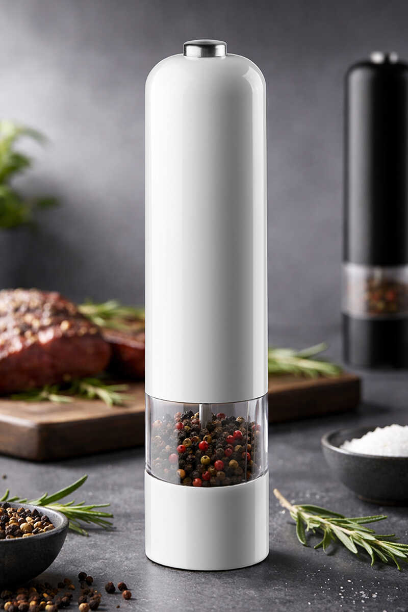 Paslanmaz Çelik Tuz & Karabiber Öğütücü Pilli - Beyaz