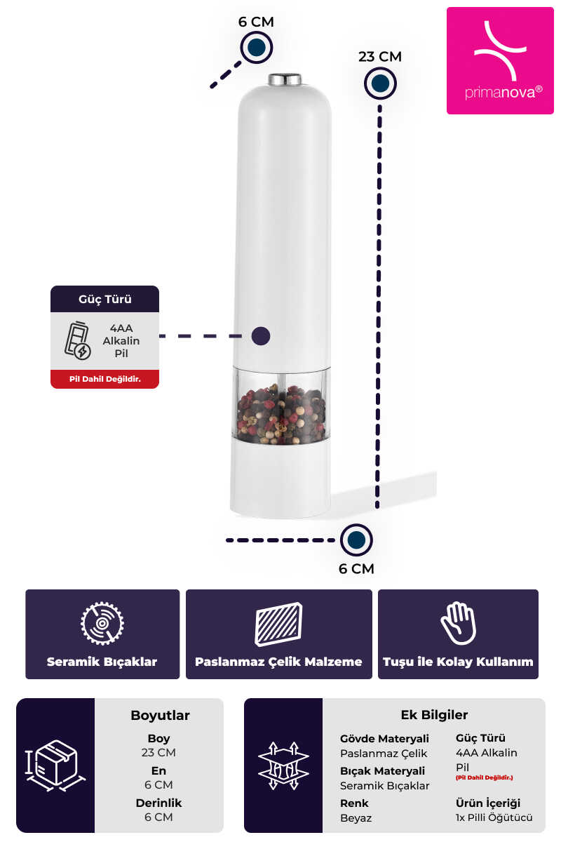 Ürün İçeriği: 1x Pilli Öğütücü (Pil dahil değildir.)