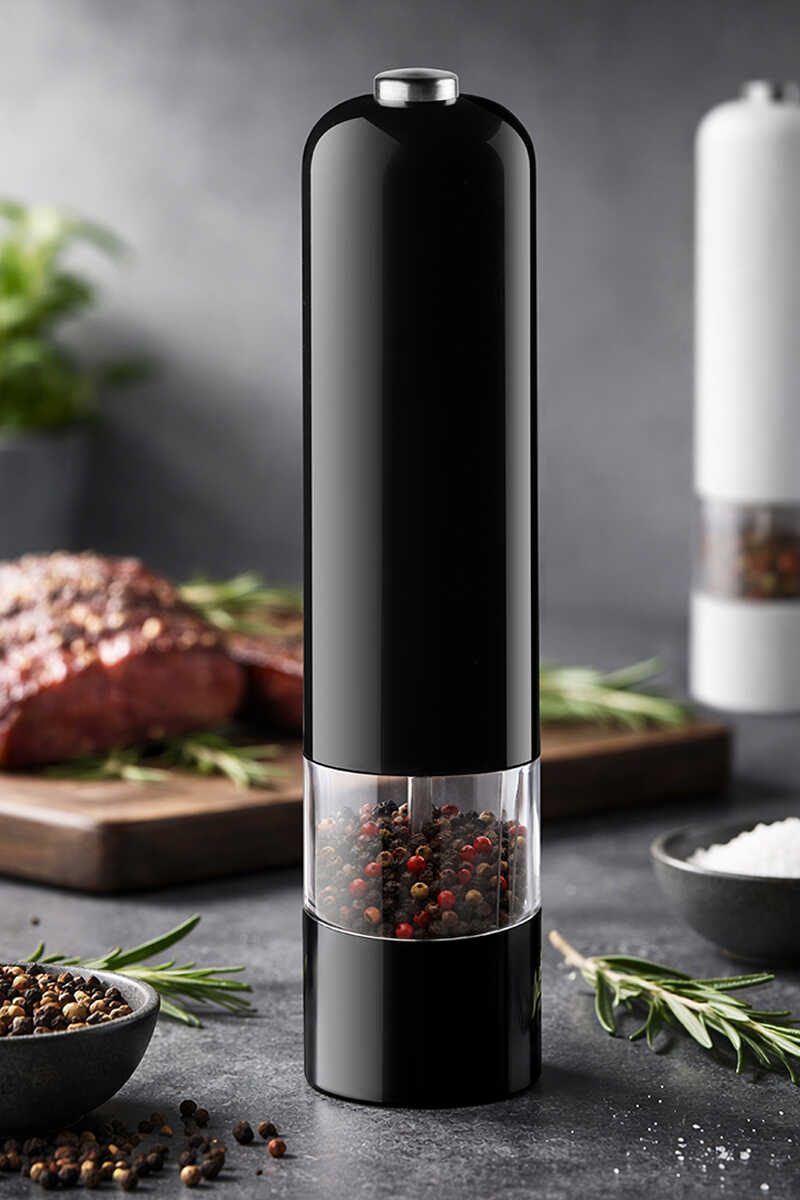 Paslanmaz Çelik Tuz & Karabiber Öğütücü Pilli - Siyah