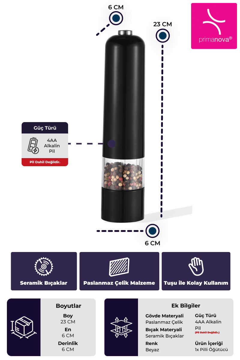 Ürün İçeriği: 1x Pilli Öğütücü (Pil dahil değildir.)