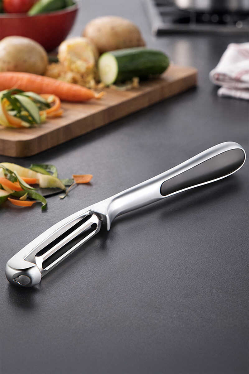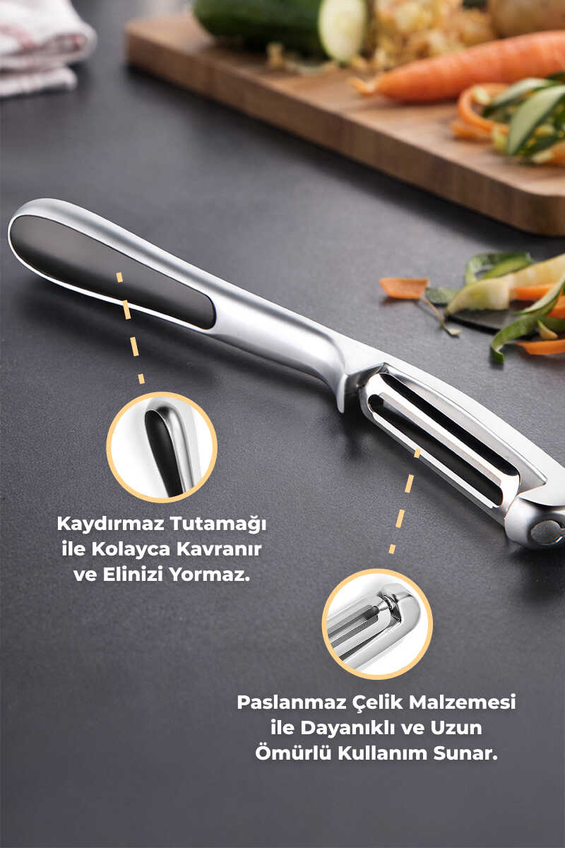 Kaydırmaz Tutamaklı Paslanmaz Çelik Yatay Soyucu - Metalik