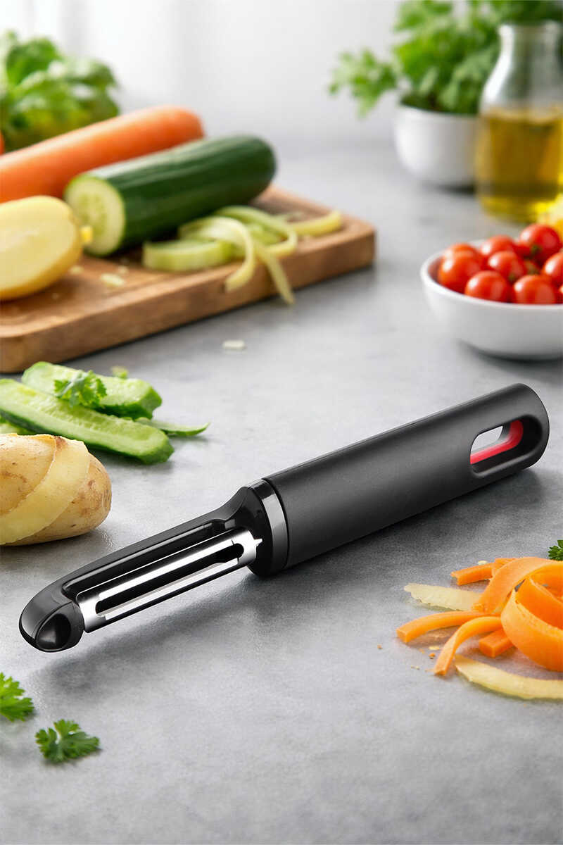 Yumuşak Tutamaklı Paslanmaz Çelik Yatay Soyucu - Siyah