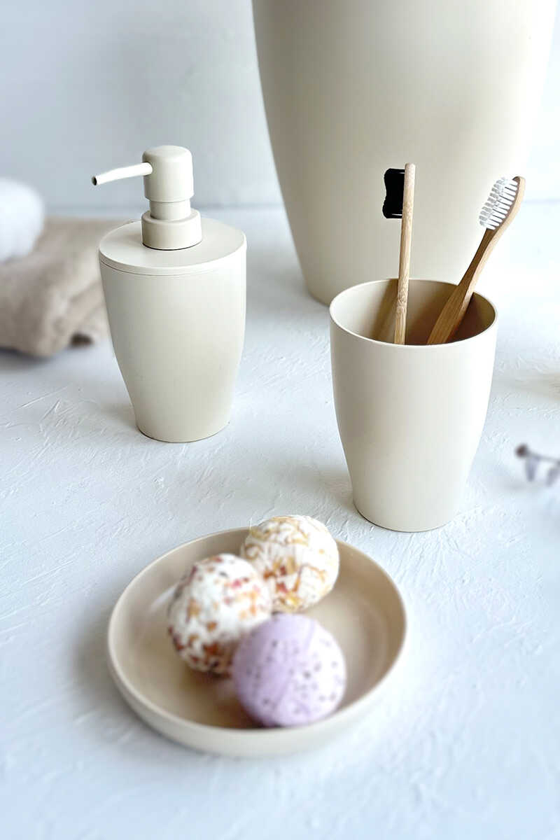 Pure 3 lü banyo seti; şıklığı ile banyonuza görsellik katarken 3 parça seti ile banyonuzu organize eder. Sıvı sabunluk sabunluk diş fırçalık