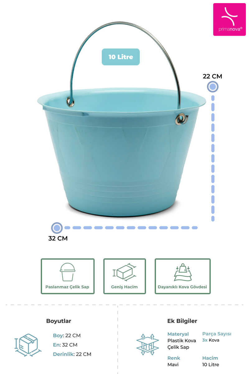 Primanova Çok Amaçlı Kova *Pasa dayanıklı sap *Güçlendirilimiş sap taşıma noktası * Kullanım HaCMi: 10 lt. * Boyutları: Ø32 x 22CM.