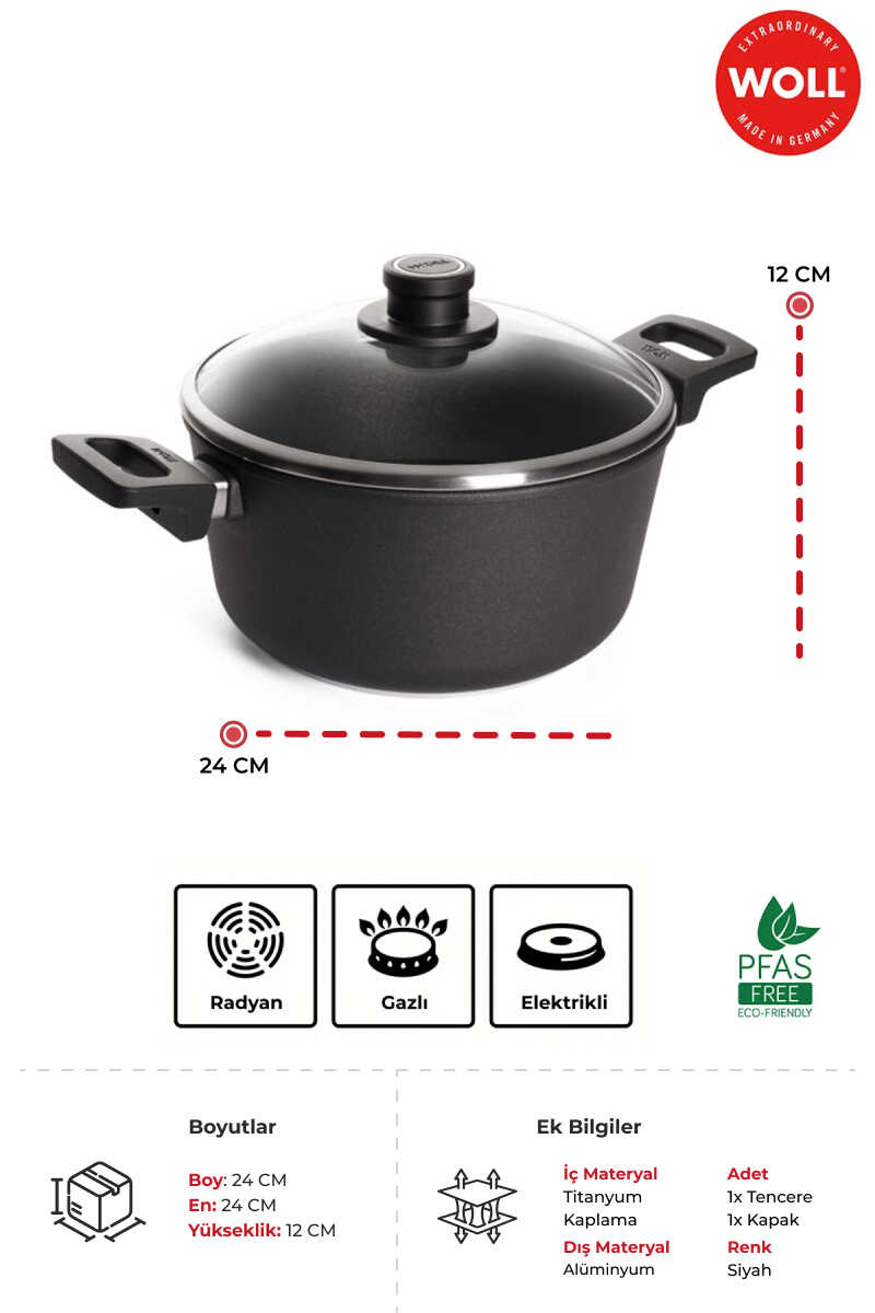 Woll titanyum kaplı derin tencere 24 CM Pratik - Kolay saklama - Kolay temizleme - Güvenli 40 yıl önce bir master şefin mükemmel kızartma tavası hayali woll ile gerçekleşti.1979 yılında başlayan serüven devam ediyor. Özel üretim süreci ve pfoa içermeyen kaplama hızlı ısı dağılımı ve ısı koruma çizilme ve aşınmalara dayanıklı 4 katmanlı titanyum bazlı sert kaplama optimal termal emilim için yaklaşık 8mm/03 kalınlıkta termal taban titanium nowo güçlendirilmiş köşeleri sayesinde darbelerden etkilenmez. Tencereler fırında kullanılabilir. Kulplar Max. 250°c kadar dayanıklıdır. Köşe açıları ürün içerisindeki sıvı malzemelerden kolay dökülmesini sağlar. Bulaşık makinesinde yıkanabilir. Yüksek sıcaklıkta deformasyon oluşmaz. *ürünlerimize kapak dahildir.